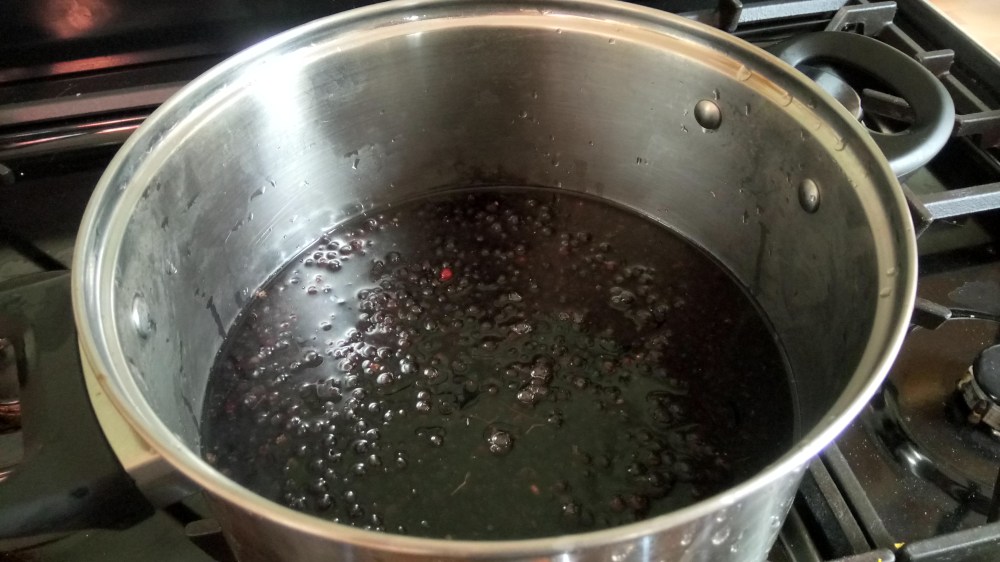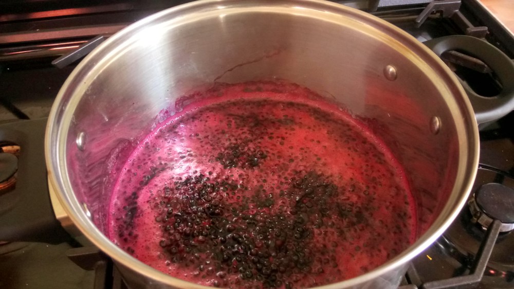 Elderberry seeds are poisonous; not lethal, but they will make you pretty ill if you eat them raw, so you’ll need to cook them down. They contain a cyanide-inducing glycoside, and, as the encouragement of cyanide in the body is A Bad Thing, this should be avoided. Luckily, heat treatment will destroy these glycosides without simultaneously destroying all the good stuff. In fact, some research has indicated that heat actually concentrates the inherent polyphenols and anthocyanins.